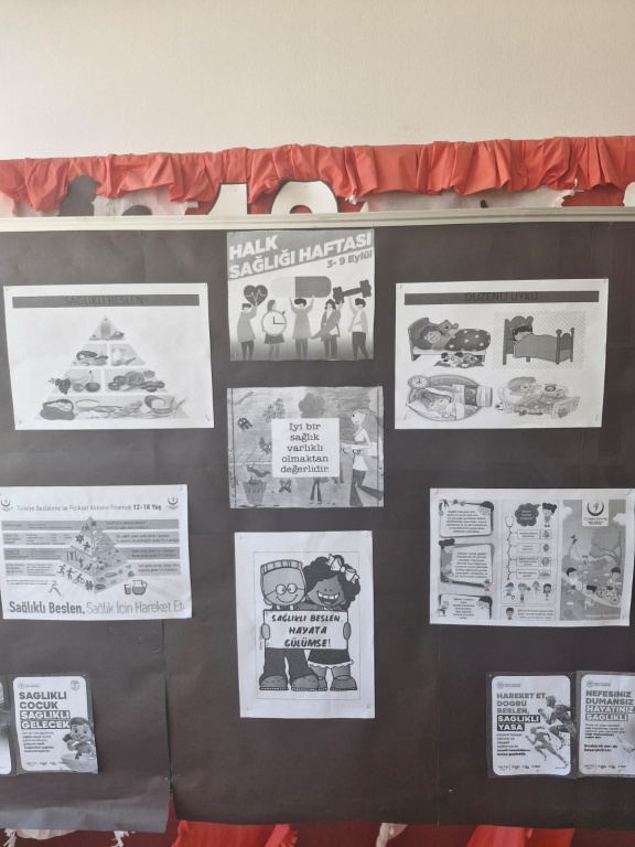 3-9 Eylül Halk Sağlığı Haftası kapsamında Matematik Öğretmenlerimizden Cengiz Andibay ve Mustafa Bezgen'in öğrencilerle yaptığı pano çalışması.
